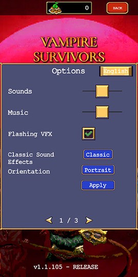 吸血鬼幸存者官方正版中文设置方法1. 下载游戏之后,进入游戏并点击【OPTIONS】按钮。