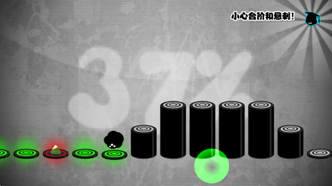 永不言弃是一款节奏感极强的音乐闯关手游,让你作为一个小黑球,随音律跳动,在畅快的音乐中挑战各式障碍。你会经历不断的跳跃,穿越音柱,随着节拍弹出一曲动听的旋律。需要警惕那些红色尖刺和台阶,灵活的跳跃可以帮助你躲避这些致命障碍,否则你的冒险之旅将瞬间结束。与传统跑酷游戏不同,永不言弃以其强烈的节奏和音乐的律动带来的挑战感,绝对会让你欲罢不能!