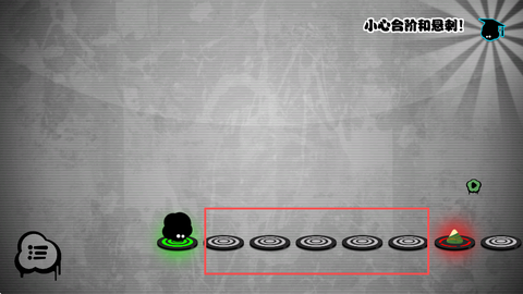 2、当你遇到尖刺时,要在跳入尖刺前一格时点击,以便让小黑球跳得更高更远。这是躲避危险的关键时刻。