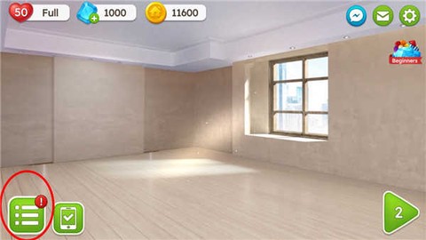 2. 点击提示区域开始你的房屋装修设计之旅;