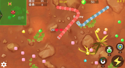 3. 道具系统绝对是一个神秘的助攻,可以收集不同的能力特效,比如加速、瞬移、变身、毒液等,提升小蛇的作战能力,让你在战场上如鱼得水。