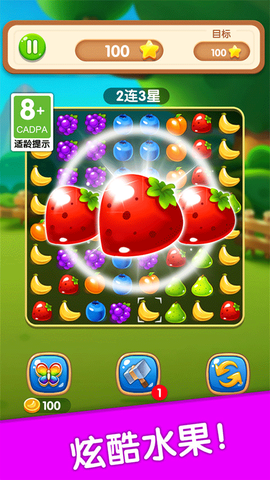 1、各种可爱的水果让你欲罢不能,快来一起消灭吧!