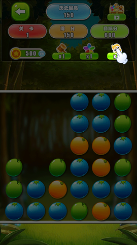 2、利用顶部的“锤子”道具,选择要消除的水果,它会帮助你快速清除障碍,增加你的消除效率。