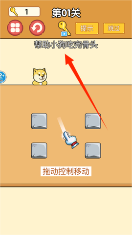 3、操作引导可爱的小狗,让它在场景中灵活移动,尽情收集每一个藏匿的骨头。