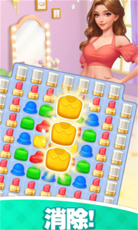 1、利用经典的三消机制来完成各关卡目标,包括清除障碍、收集特定物品、达成分数等。每完成一关,你都会获得“魅力币”和“设计点数”,这些都能助你解锁更精彩的内容。