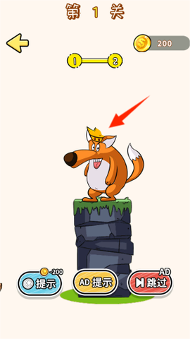 1、游戏成功启动后,选择“脑洞小天才”模式,即可进入趣味挑战。在画面中央,你会看到一顶奇形怪状的缺角狐狸王冠,别急,咱们一起来把它修复。