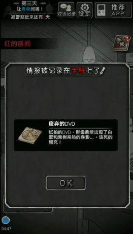 再次回到青树的房间,将坏掉的播放器交给金泽,接着开始了对青树房间的全面搜索。