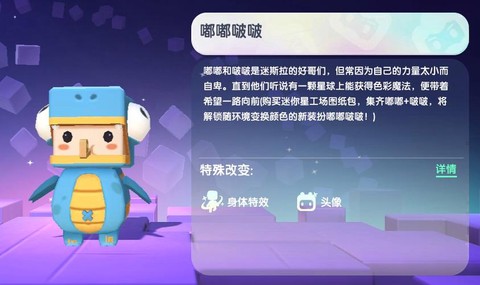嘟嘟皮肤的独特性为什么大家都这么想要嘟嘟呢?除了它可爱的外观,更重要的是它进化后的嘟嘟啵啵皮肤有变色能力!在游戏里随着昼夜更替或者季节变化,你的皮肤颜色也会跟着变,真的太炫了。游戏里的描述说,嘟嘟和啵啵在旅行中找到了记载色彩魔法的书,当它们交叠双手时,魔法就会出现,原本的两个身影合二为一,变成传说中的变色龙。这个设定真的很用心,让游戏多了不少乐趣。我第一次看到它变色的时候,简直惊呆了,立马觉得自己是全场最靓的仔。