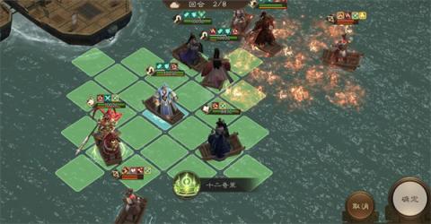 进入第二回合,周瑜应移动并开启他的厉害技能“烈火破军”,对右侧的两个弓兵造成毁灭性打击。同时,郭嘉启动怒技,攻击对面左侧的两个敌人,甄姬则开启怒技为队友加上护盾。