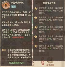 在该阵容中,何秀姑是不可或缺的辅助核心。她的必杀技不仅能翻倍罪状,还能施加“滞气”效果来控制敌方怒气。同时,她的被动技能“太乙莲光”为全队提供了重要的伤害分担和成长属性,极大地增强了团队在持久战中的生存能力。而其“罪咎难辞”被动则显著提升了罪状上限并降低敌方输出,进一步巩固了阵容的防守反击能力。