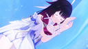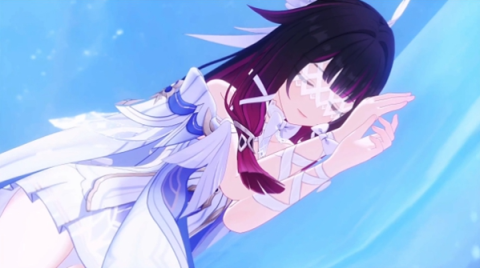她的形象也颇具魅力,深姜红色挑染的黑发和独特的白色网格面纱使她显得神秘而优雅。后脑处的六翼翅膀头饰,以及白蓝相间的月神服装,无疑让她在人群中脱颖而出。赤脚的她,手腕和腿部装饰着白色蝴蝶结的丝绸,脚底时常泛着水珠与月牙形状的高跟底座,时常以闭眼的姿态与人相对,令人难以忘怀。
