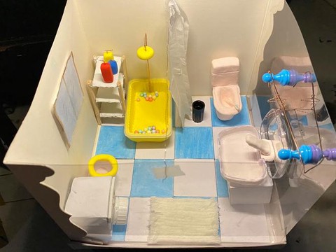 搞定马桶,旁边的洗手池也不能马虎。找两个“储物箱”叠起来,这就构成了洗手池的柜体。在顶层储物箱的上面,放置一个“水方块”,这就是我们的水池了!墙上对应的位置,可以安上一面“玻璃板”,周围用金块或者闪金的方块围个边框,一面华丽的镜子就诞生啦。游戏里的小人儿对着镜子洗漱,多有意思。