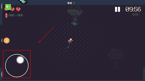 2、游戏界面右下角的圆盘是你的控制方向,通过它来掌控角色的移动;