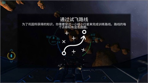 7. 为了巩固所学的技巧,穿越一组小行星完成训练路线,路的每个点都会被蓝色圆圈标记,非常明确;