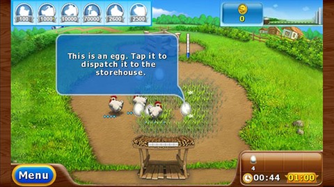 2、进入游戏,第一眼看到的就是当下关卡的任务,比如收集四枚鸡蛋。
