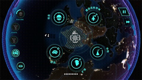 4、点击地球上的其他势力,可进行直接攻击、研究、扩张、拆除及建造导弹等操作;