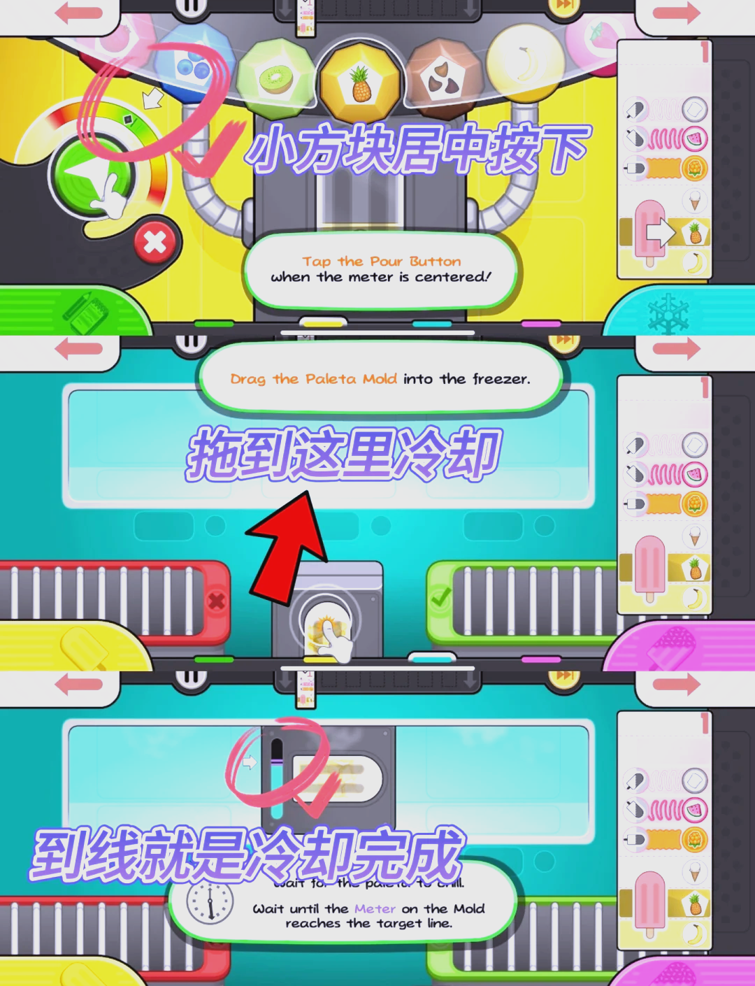 8、依据右侧的订单制作冰棍,掌握每一个制作步骤。
