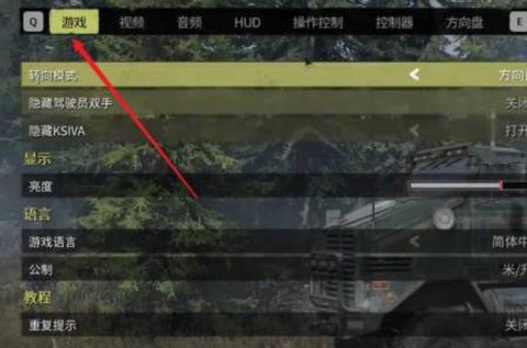 2. 接着你会来到设置界面,切换到顶部的游戏菜单。